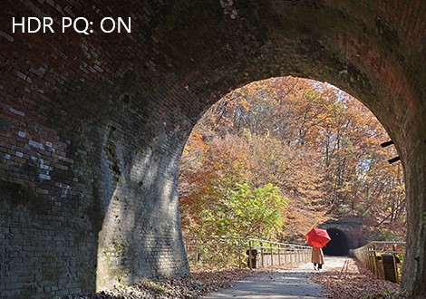 Images rendered in 10-bit HDR PQ have a higher dynamic range with beautiful gradations, especially in highlights areas. Achieve greater gradation when using Auto Lighting Optimizer and Highlight Tone Priority with HDR PQ.